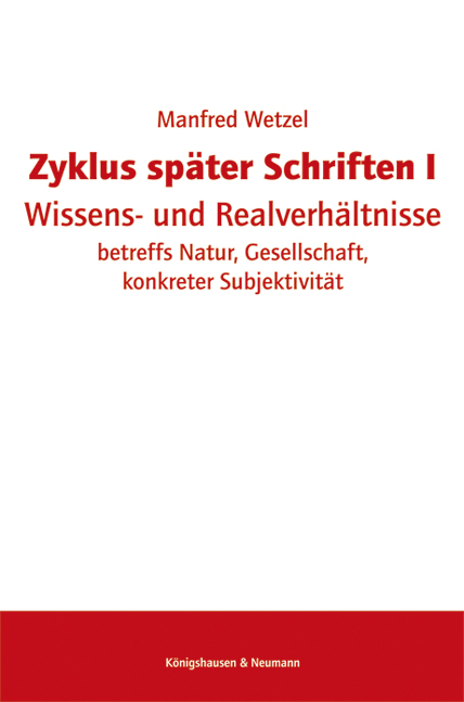 Zyklus später Schriften I – Wissens- und Realverhältnisse betreffs Natur, Gesellschaft, konkreter Subjektivität – Manfred Wetzel – ISBN 9783826055416 / 978-3-8260-5541-6 / 978-3-82-605541-6