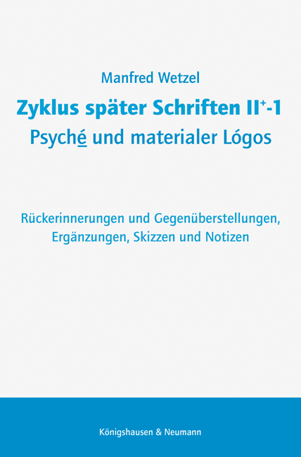 Zyklus später Schriften II+-1 Psyché und materialer Lógos – Rückerinnerungen und Gegenüberstellungen, Ergänzungen, Skizzen und Notizen – Manfred Wetzel – ISBN 9783826073007 / 978-3-8260-7300-7 / 978-3-82-607300-7